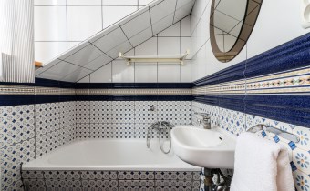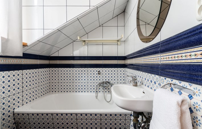 Łazienka z wanną i umywalką – terakota, glazura (widok w kierunku południowo-wschodnim).