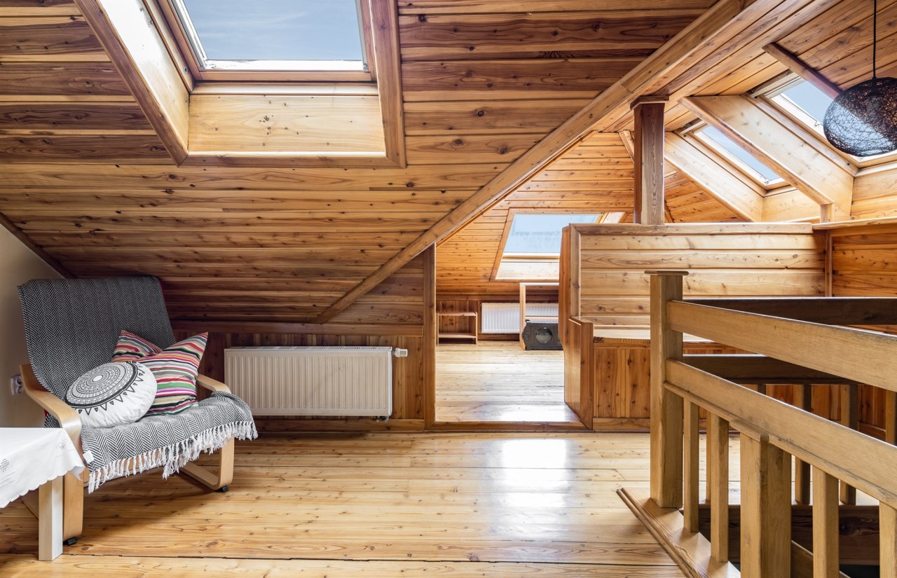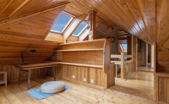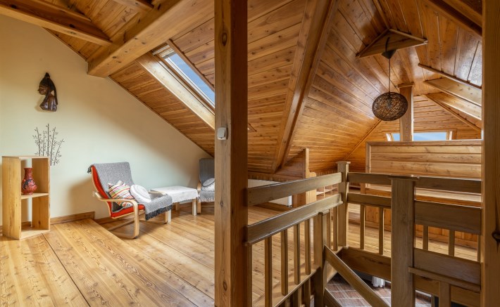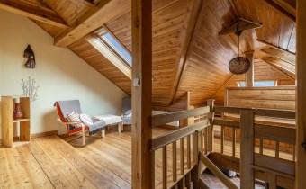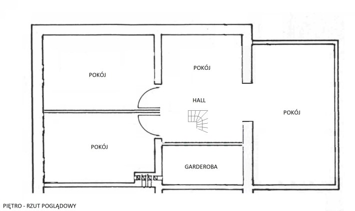 Pokój otwarty na hall ze schodami – na podłodze deska (widok w kierunku południowo-wschodnim i południowo-zachodnim).