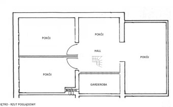 Pokój otwarty na hall ze schodami – na podłodze deska (widok w kierunku południowo-wschodnim i południowo-zachodnim).