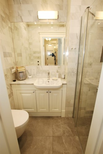 2 oraz hol wejściowy oraz łazienka z pojedynczą umywalką, toaletą i prysznicem 2.8m