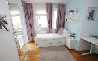 Mieszkanie jest idealnie ciche, widne i słoneczne, ma wystawę okien w aż trzech kierunkach.