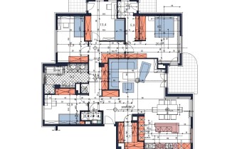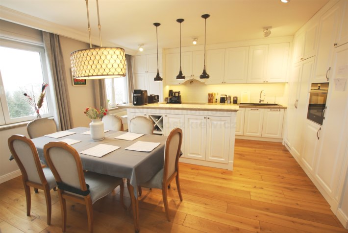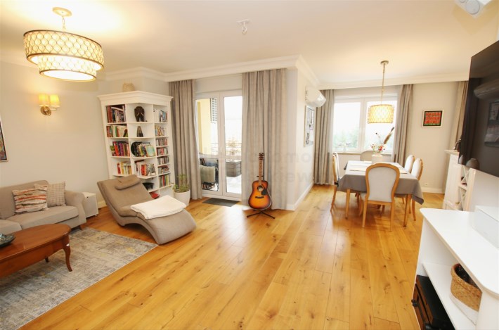 Zaprojektowane wg projektu architekta, wykończone w wysokim standardzie mieszkanie 5-6 pokojowe położone na Kabatach tuż przy Lesie Kabackim (widok z okien), w odległości zaledwie 8-10 minut spacerem od stacji metra Kabaty.