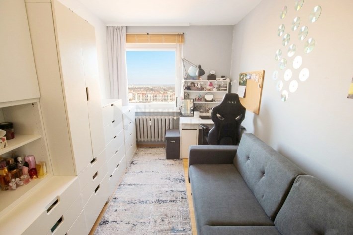 Mieszkanie 3-pokojowe zlokalizowane na zielonym Ursynowie w bliskim sąsiedztwie metra (3-4 minuty do stacji metra Natolin) i przystanków autobusowych. Położone jest na 12-stym, ostatnim piętrze z ekspozycją wschodnią.