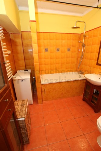 Łazienka 4.52m - terakota, glazura, wanna, szafkoumywalka, wc i pralka.