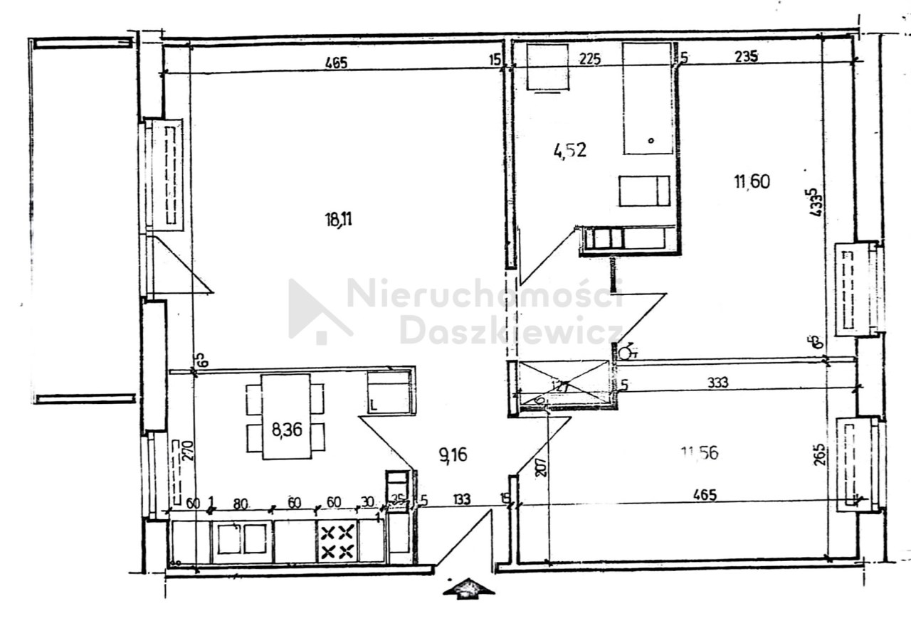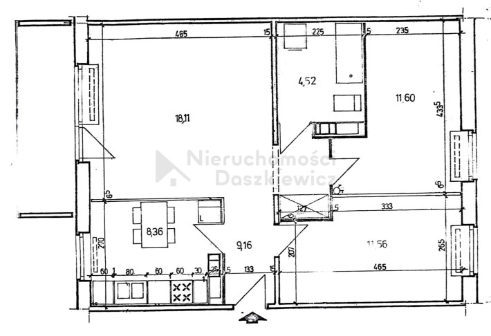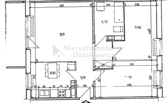 Powierzchnia pokoi 18.11, 11.60, 11.56 m2