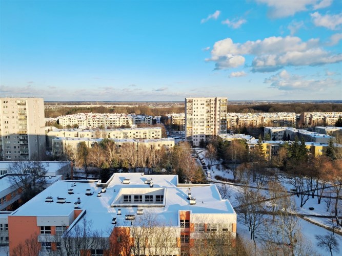 Mieszkanie 3-pokojowe zlokalizowane na zielonym Ursynowie w bliskim sąsiedztwie metra (3-4 minuty do stacji metra Natolin) i przystanków autobusowych. Położone jest na 12-stym, ostatnim piętrze z ekspozycją wschodnią.