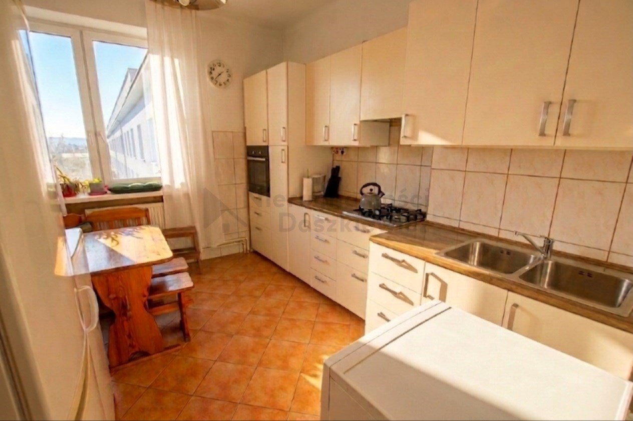 ROZKŁAD MIESZKANIA (wysokość 2.83m) Pokój 17m - na podłodze panele (okna od strony południowej). Pokój 15.7m - na podłodze panele (okna od strony południowej). Oddzielna kuchnia 12.7m - na podłodze terakota, glazura w pasie technologicznym, nowa zabudowa pod wymiar z AGD: płyta gazowa, piekarnik elektryczny, lodówko-zamrażalka, pochłaniacz i pralka (okna od strony północnej). Łazienka 2.6m - terakota, glazura, wanna, szafkoumywalka i wc. W przedpokoju na podłodze panele, na wyposażeniu duży pawlacz.