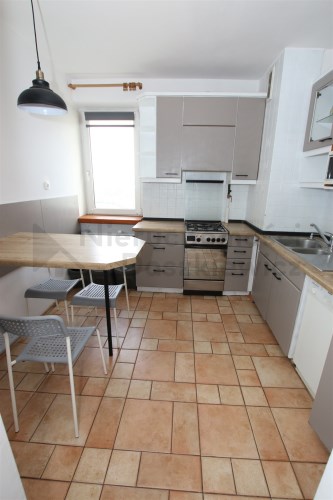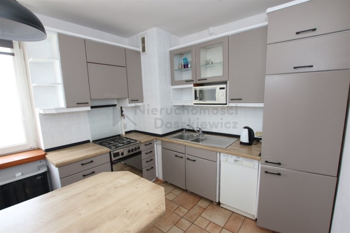 Kuchnia 8.4m – na podłodze terakota, meble w zabudowie z AGD: kuchnia gazowo-elektryczny, kuchenka mikrofalowa, zmywarka, lodówko-zamrażalka (wystawa okien w kierunku wschodnim). W kuchni znajduje się także stół z 4 krzesłami.
