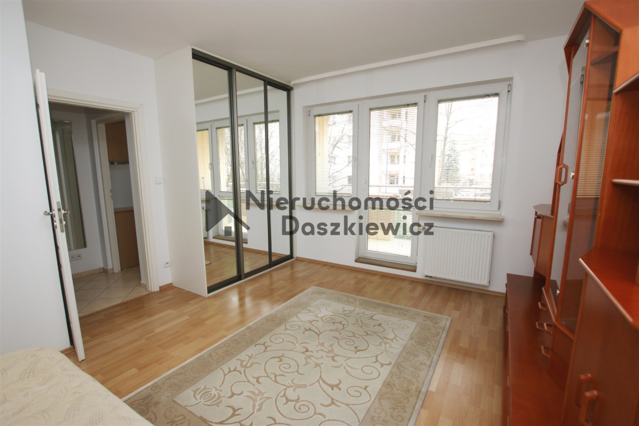 Nieduże mieszkanie o funkcjonalnym i przestronnym rozkładzie pomieszczeń położone na Kabatach w bliskim sąsiedztwie Alei Kasztanowej i parku, w odległości 10 minut spacerem od stacji metra Kabaty.
